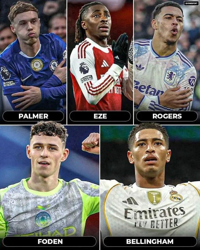 北京时间12月25日,虽然距离2026年世界杯开幕还有半年时间,但图赫尔领导下的英格兰引起了外界的广泛关注,主帅首发阵容的选择也受到了特别关注。目前,英格兰队在10号位上只有五名顶级球员:贝林汉姆、帕尔默、福登、罗杰斯和埃兹。其中,福登本赛季重返中路,重拾火热状态。罗杰斯在维拉表现出色,外界越来越呼吁两人争夺首发位置。另外两名10号球员,埃泽在加盟阿森纳后曾一度受到无法融入的困扰,而帕尔默此前也一直受到伤病的困扰。此外,最重要的贝灵厄姆在外部排名中声誉最低。皇马主力中场本赛季受到伤病和球队状态的困扰。他目前的表现并没有达到球迷的期望。所以如何平衡球队的阵容,显然是英格兰主帅图赫尔欣喜关心的问题。英格兰10号球员前五名:贝林厄姆,22岁,本赛季20场比赛贡献5球和4次助攻,身价1.6亿欧元;帕尔默,23岁,本赛季8场比赛打进3球,身价1.2亿欧元;福登,25岁,本赛季23场比赛贡献10球4助攻,身价8000万欧元; 23岁的罗杰斯本赛季24场比赛有7个进球和5次助攻,身价7000万欧元; 27岁的埃泽本赛季22场比赛贡献5球4助攻,身价6500万欧元;
