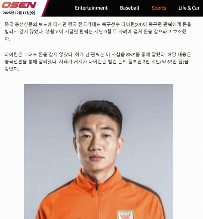 近日,戴琳拖欠粉丝救命钱的事件不断在网络上流传。韩国媒体《OSEN》12月15日也报道了此事。韩媒标题为《中国足球真的有那么糟糕吗?》一名前国足球员向球迷借钱,甚至辱骂球迷,举报戴琳负债累累的事实。韩国媒体写道:“中国足球正走向死胡同。据中国媒体报道,中国国足队员戴琳(39岁)向一位名叫潘硕的球迷借了钱,但一直没有偿还。财务拮据的潘硕在9月份两次向戴琳索要钱,但戴琳仍然没有还钱。对于这种情况,潘硕在社交媒体上愤怒了,他向戴琳支付了部分贷款,3000元(约合人民币10000元)。 63万韩元)问题是,潘硕去年8月被诊断出患有肝硬化和肝功能衰竭,据报道他只花了3万元(约63万韩元)。630万韩元)的治疗费用。他失去了房子和汽车,经济状况陷入困境。戴琳要求潘硕删除该社交媒体帖子。潘硕拒绝后,戴琳据称辱骂他。随后,中国媒体对整个事件进行了报道。 “戴琳玷污了中国足球的声誉”、“赶紧把钱还了”、“那些信任国家队球员借钱给他们的人是错误的”等言论。值得一提的是,韩媒发表文章后,潘硕不幸去世,因此报道中并未提及此事。